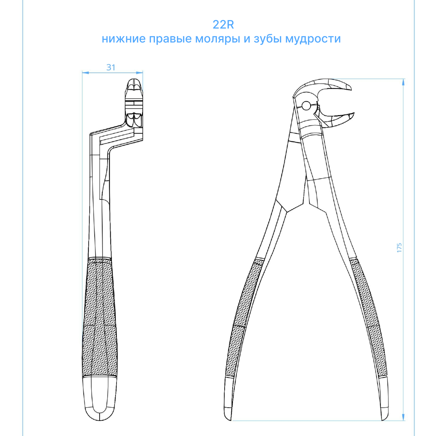 Щипцы для удаления нижних правых моляров и третьих моляров 0100-22R